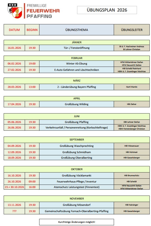 | Datum | Beginn | Übung / Ausbildung | Leitung |