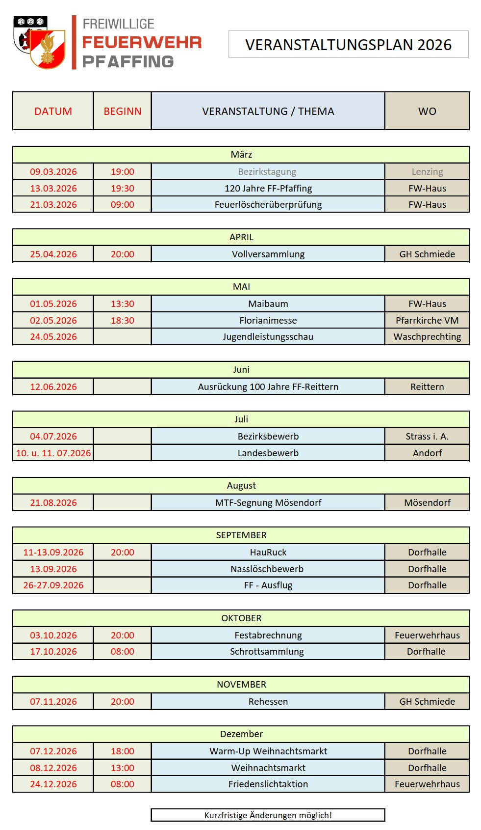 | 21.03.2026 | 09:00 | Feuerlöscherüberprüfung | FW-Haus |