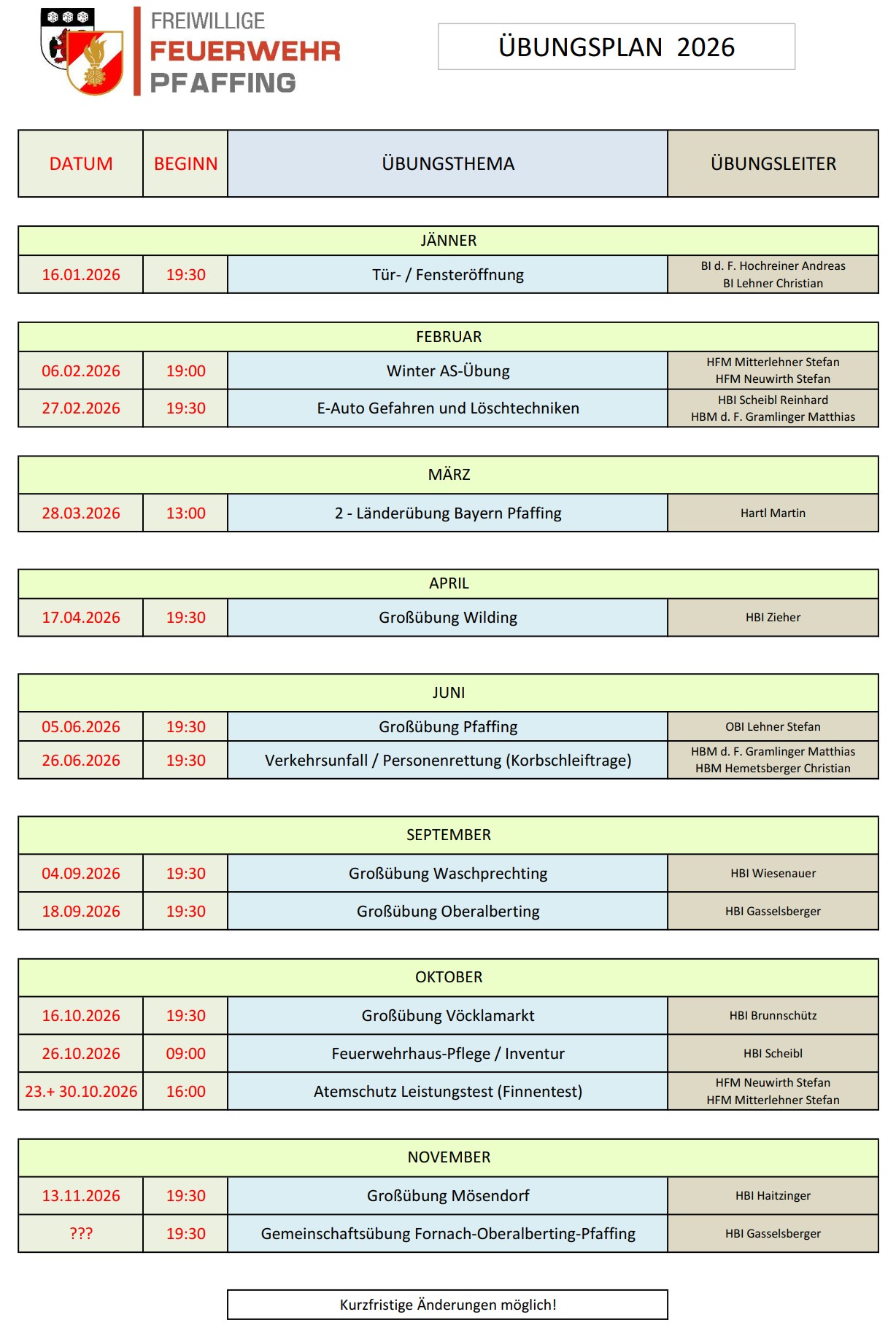 | 05.06.2026 | 19:30 | Großübung Pfaffing | OBI Lehner St. |