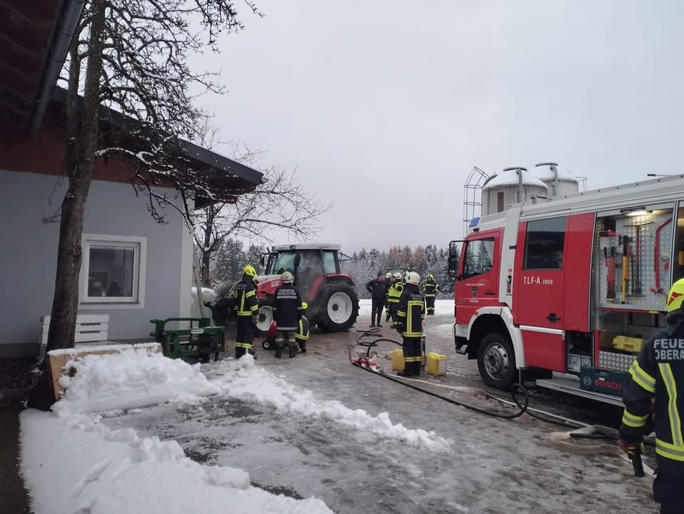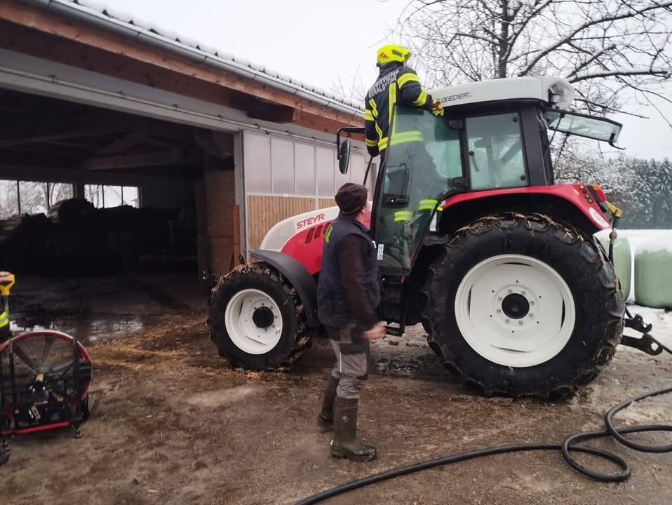 Ein Landwirt bemerkte während der Stallarbeit Brangeruch, welcher von einem Traktorbrand in der Maschinenhalle stammte. Umgehend wurden erste Löschmaßnahmen sowie die Alarmierung der Feuerwehren eingeleitet.